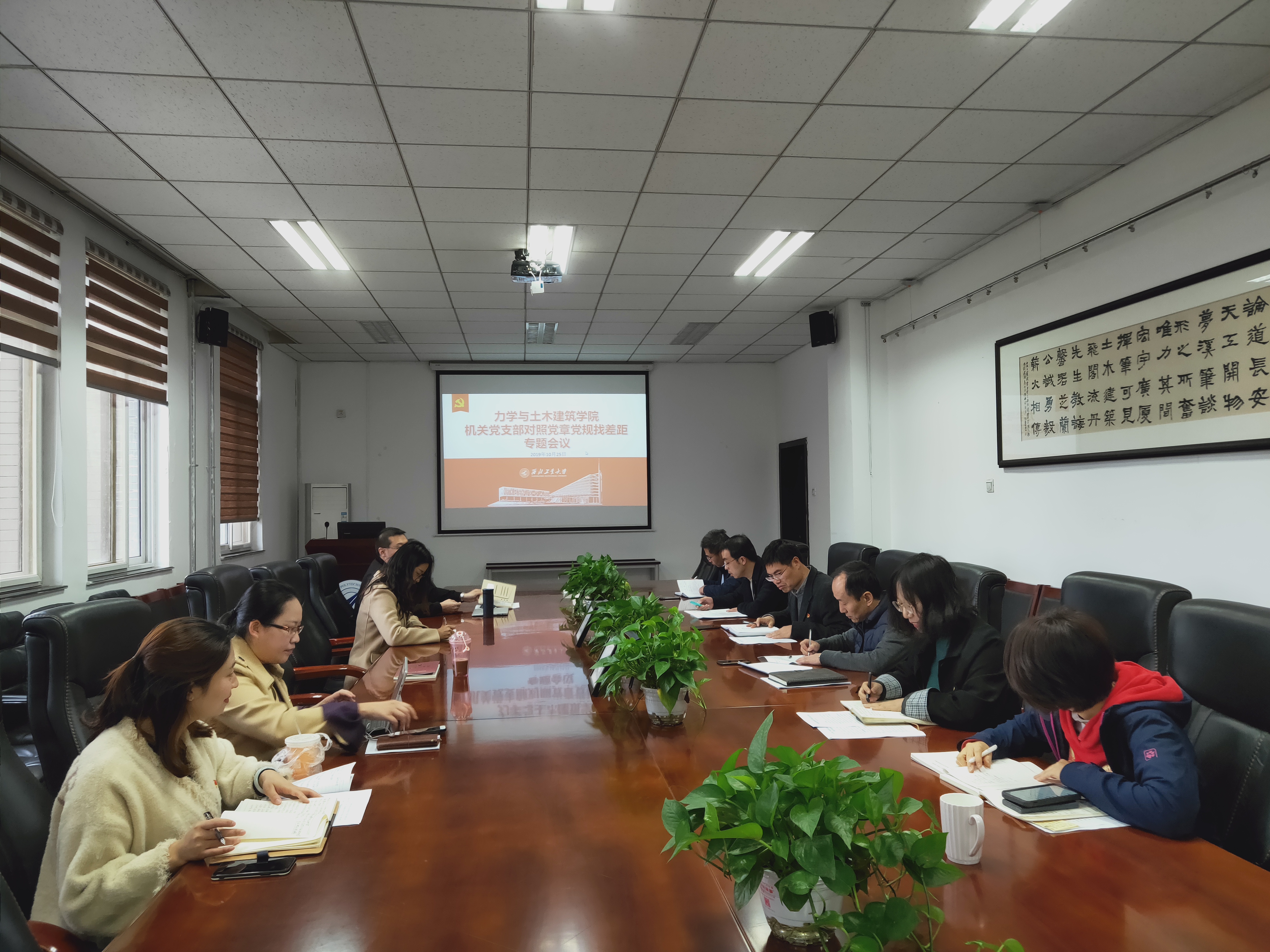 西工大新闻网10月28日电(孔青)10月25日,力学与土木建筑学院组织召开领导班子“对照党章党规找差距”专题会议。学院领导班子成员、机关党支部成员及学校主题教育第四巡回指导组代表于竹君等参加了会议。会议由机关党支部书记王凡华同志主持。