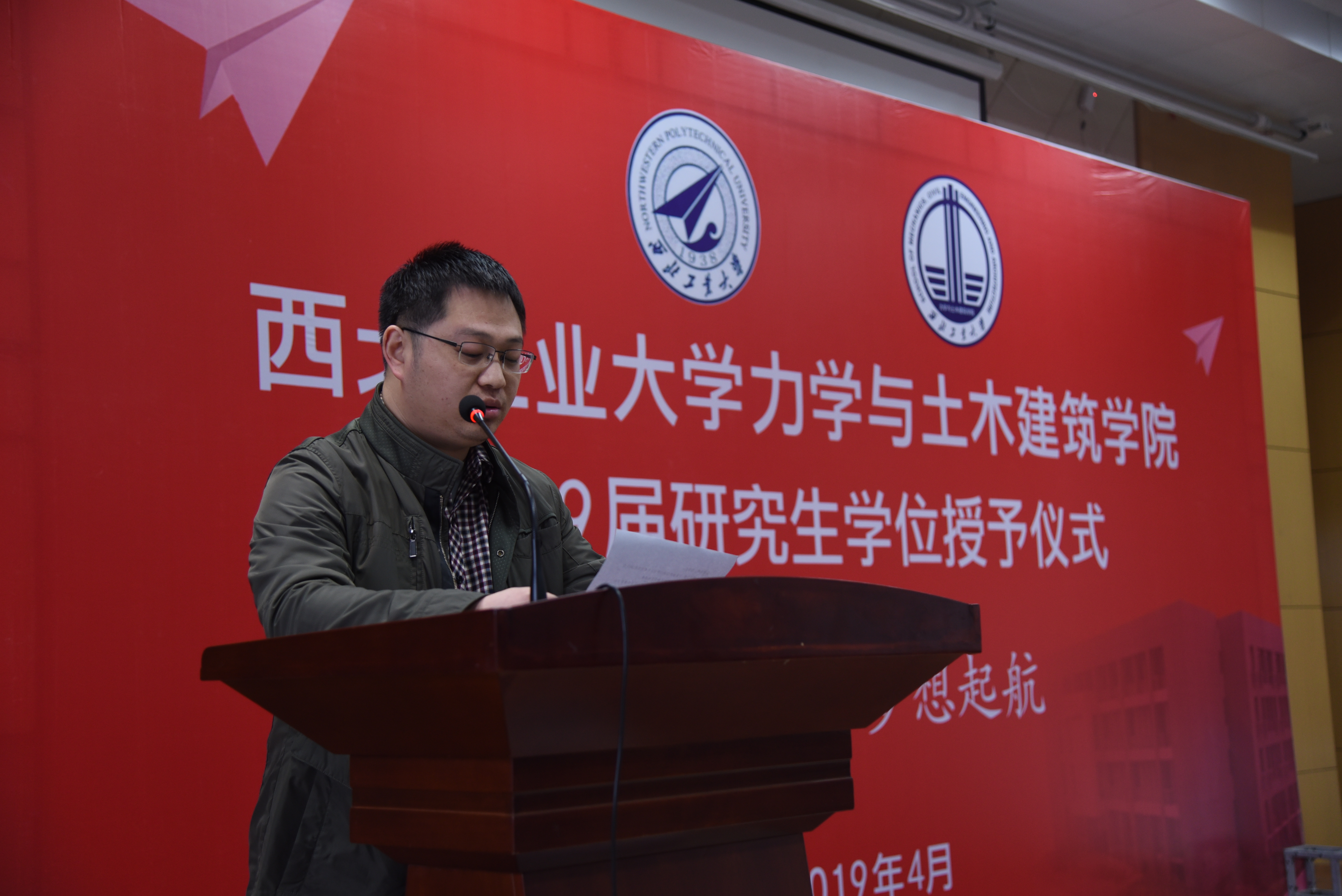 西工大新闻网4月3日电(牛茂贵)“曾梦想仗剑走天涯,看一看世界的繁华……”伴随着WindLeader乐队饱含深情的歌声,4月2日下午,力学与土木建筑学院2019年研究生学位授予仪式在学院报告厅举行,祝贺19名博士研究生和76名硕士研究生圆满完成学业,顺利获得学位。