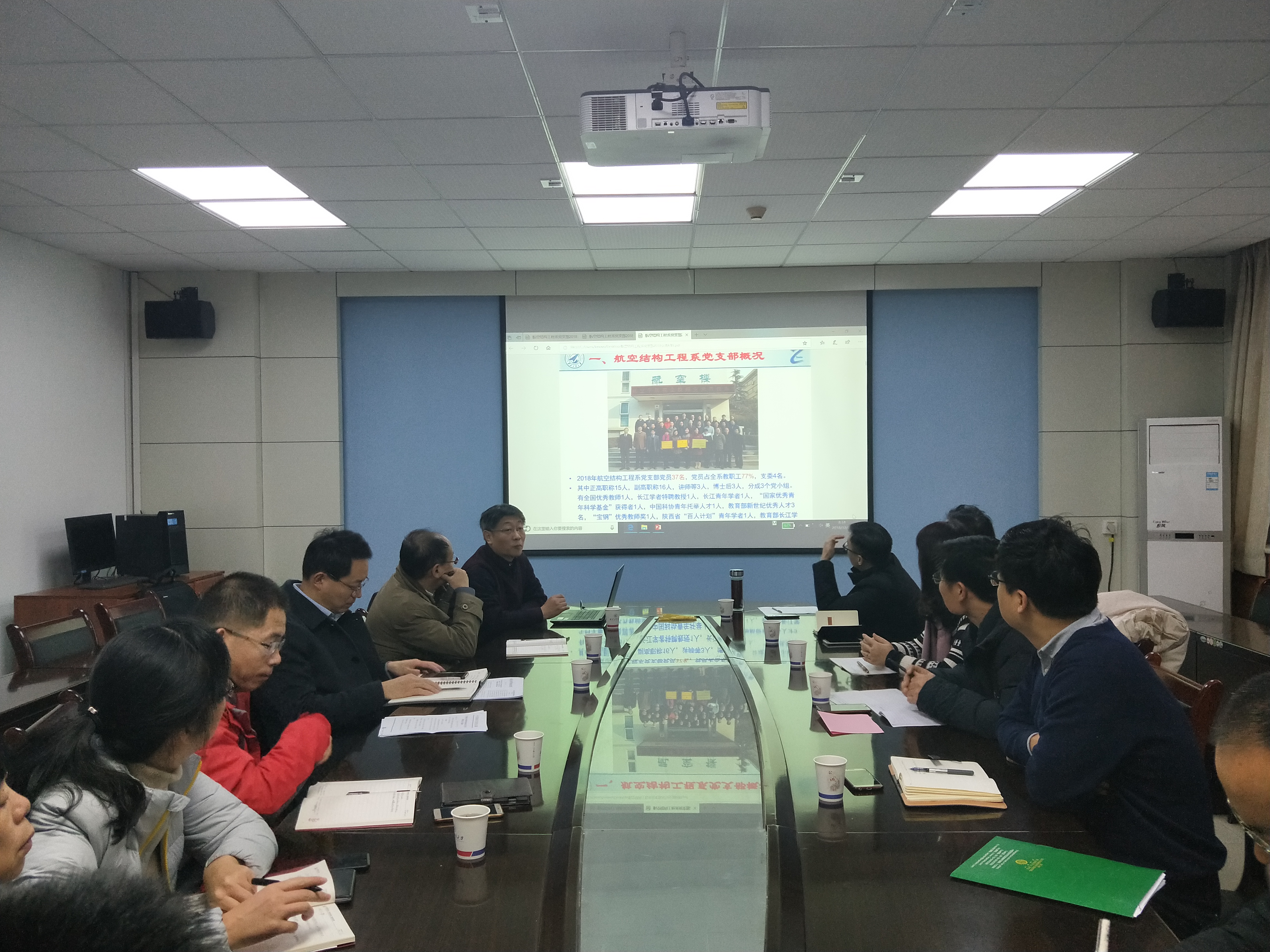 航空学院党委书记贾丙雷、副书记张学良,结构工程系党支部书记郑锡涛教授及支部委员参加了交流会。