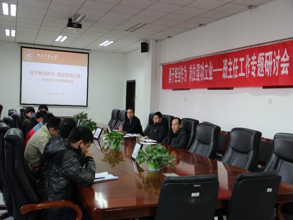 随后,班主任就相关工作进行交流,重点对高等数学、英语期中考试情况和成绩分析做了汇报,详细介绍了与学生谈心谈话工作和困难学生帮扶政策,也分享了各自根据专业特长在学生中加强专业认知以实现专业引领的方法。