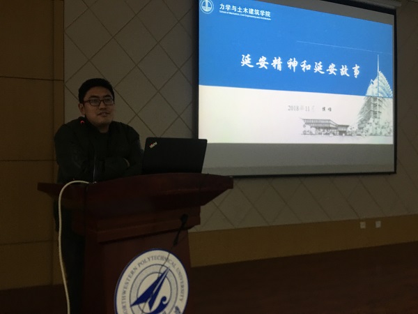 侯恬老师讲述的主题为《延安精神和延安故事》,他从历史发展的角度论述延安在中国革命进程中的重要地位,从孕育期、形成期和成熟期三个方面深刻阐述延安精神的发展历程和精神内涵,用两则革命年代的故事带领同学们回到二十世纪三、四十年代的延安,感受那个特殊的年代,通过回顾历代领导人对于延安精神的论述,勉励同学们要从延安精神中汲取力量,在学习、工作和生活中坚持实事求是的原则,善于将书本、课堂学习到的理论付诸实践,提升个人综合素质,为新时代贡献自己的力量。