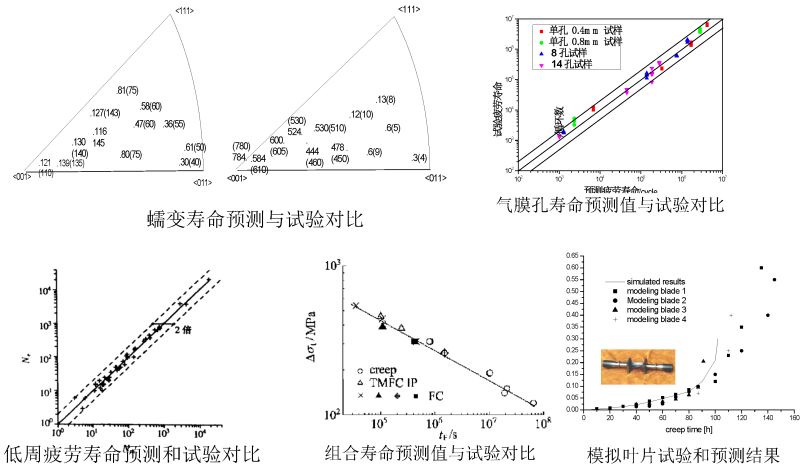 该项目的主要发现点包括:揭示了不同晶体取向、温度、载荷状态下的滑移系开动规律。建立了基于应变能的筏化演化模型,揭示了晶体各向异性和晶体取向敏感性的细微观机理;建立了能够反映材料组织结构特点和晶体取向相关性、并经过广泛实验验证的服役环境下晶体各向异性弹塑性本构和寿命理论;提出了温度梯度、小试样、双剪切试样等复杂环境下模拟真实叶片和服役环境的宏细观试验方法和理论;基于晶体各向异性弹塑性理论的强度寿命分析与多学科设计优化理论方法,开发了晶体各向异性弹塑性有限元程序和单晶叶片结构强度寿命分析与设计软件。