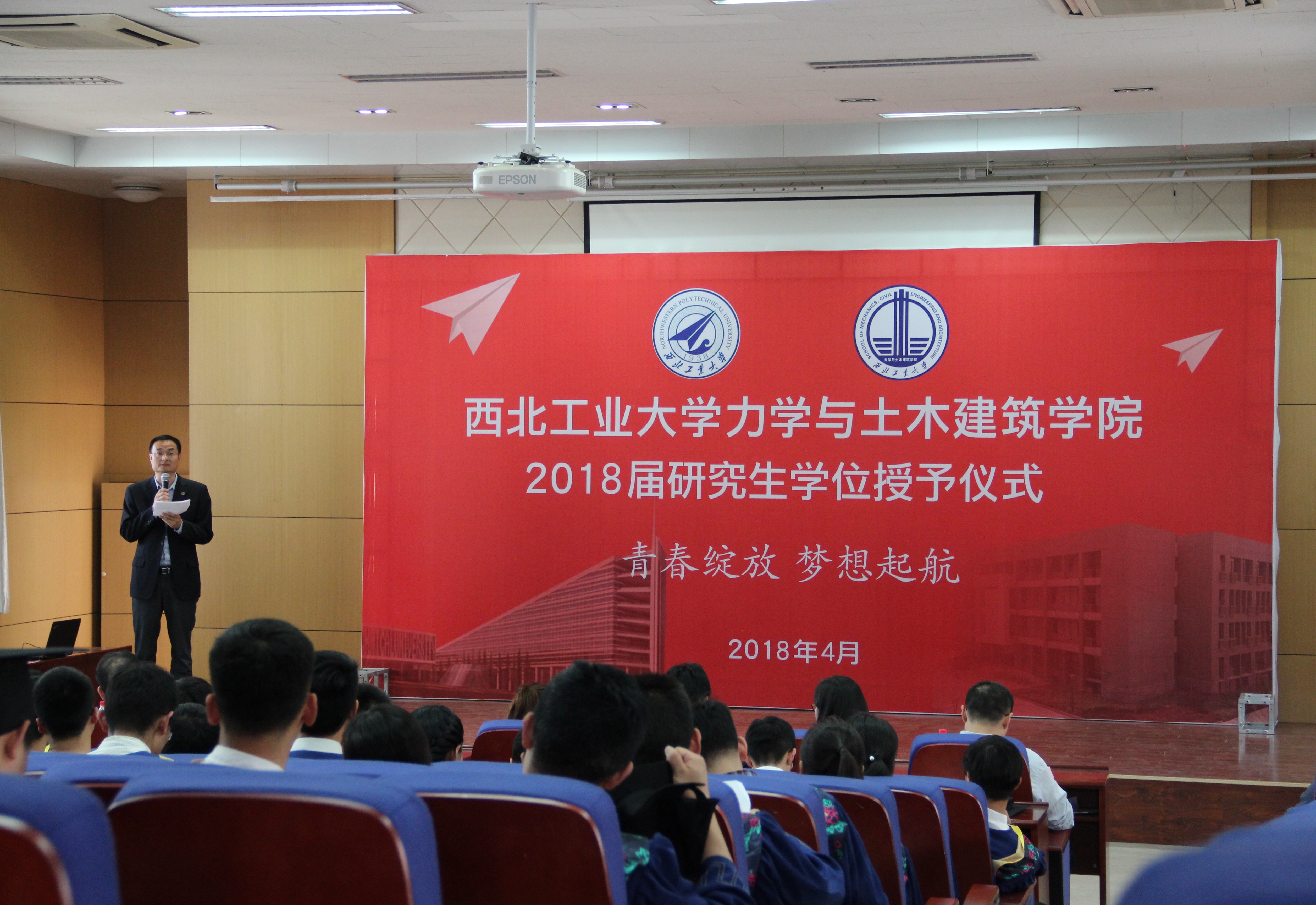4月2日下午3:00,我院2018届研究生学位授予仪式在学院楼报告厅举行,学院副院长李栋、王少华、温世峰,土木工程系副主任张凯,建筑系主任杨卫丽,研究生辅导员老师牛茂贵及学院全体2018届毕业研究生参加,学院党委副书记康鹏军主持会议。