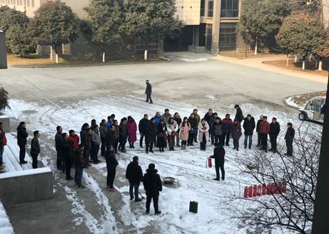 为使全院师生能正确掌握灭火器的使用方法,进一步增强师生的安全意识和救灾能力,1月12日上午由学校保卫处郑活勃老师在学院楼实验室北侧广场开展了灭火器使用实战演练培训活动。