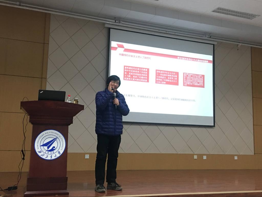 为深入学习贯彻党的十九大精神,12月13日,我院邀请马克思主义学院高宝营副教授为我院师生讲授专题党课。党课由辅导员牛茂贵主持。