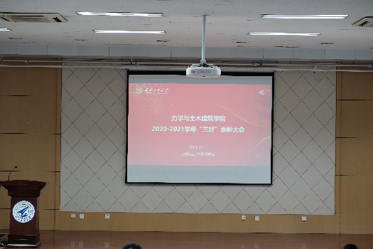 为表彰和鼓励先进个人与先进集体,激励同学们积极进取、努力学习,力学与土木建筑学院于12月11日下午在学院楼报告厅举办了2020-2021学年“三好”表彰暨学风建设月动员大会。本次表彰大会由学院党委副书记乔吉超主持,院长李栋教授、学院党委书记巨维博同志以及各年级辅导员、部分班主任出席。