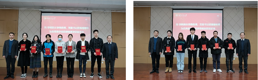 首先,与会人员全体起立,齐唱中华人民共和国国歌。随后,李栋院长宣读了先进班级、优秀研究生标兵、单项奖、国家奖学金、专项奖学金、校优秀学生及优秀研究生奖等奖项名单。院长李栋教授和学院党委书记巨维博老师为获奖学生代表一一颁奖。