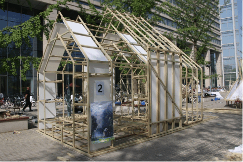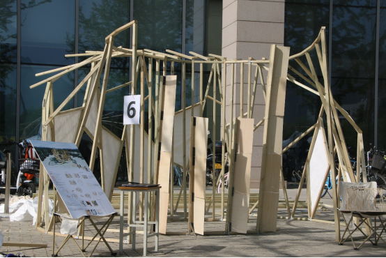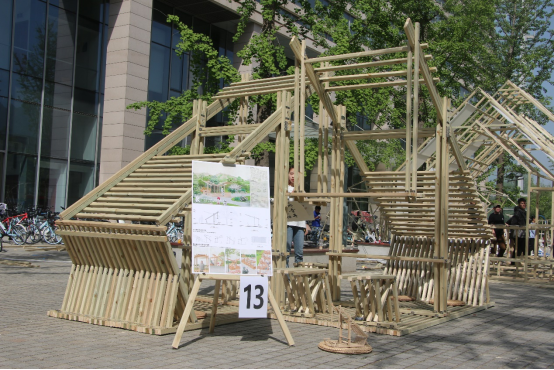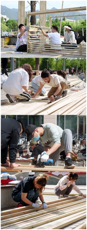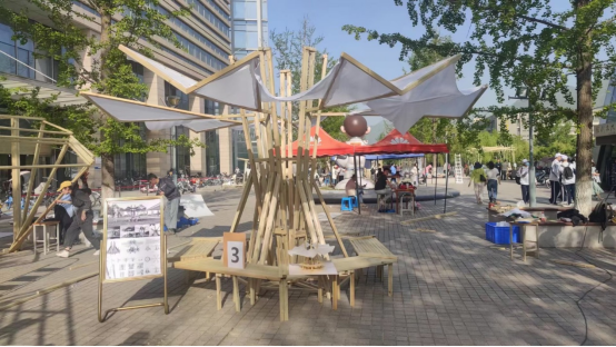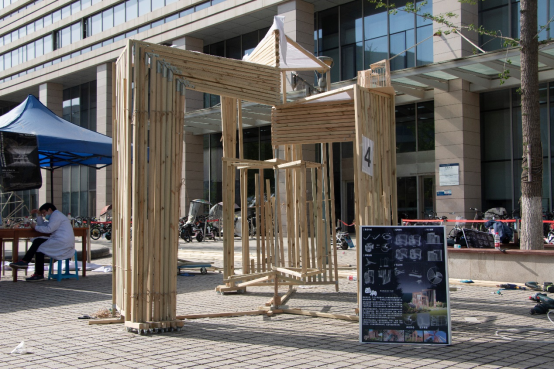 竞赛主题受过去三年公共空间中的构筑物功能会随着区域内疫情情况发生改变而得到启发,鼓励学生思考如何利用一个构筑物创造一处适应后疫情时代的“叠加态空间”,它可以是静态的,利用空间层面的巧妙构思满足不同时段的功能要求;它也可以是动态的,利用结构层面的创新设计实现灵活的动态响应。每支参赛队伍提供120根4米长,截面尺寸4cmX3cm的樟子松木龙骨,节点连接方式和辅助材料则不受限。