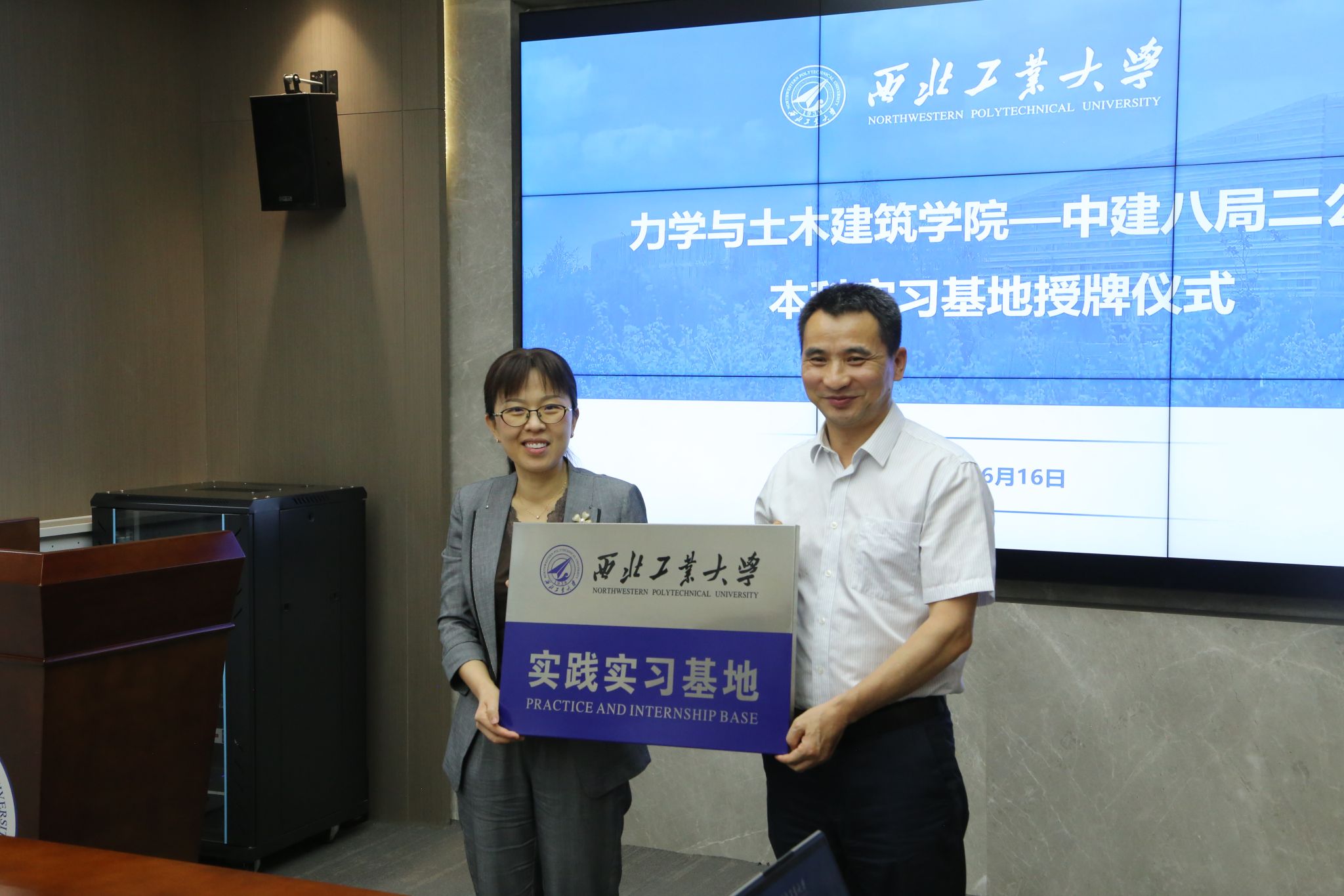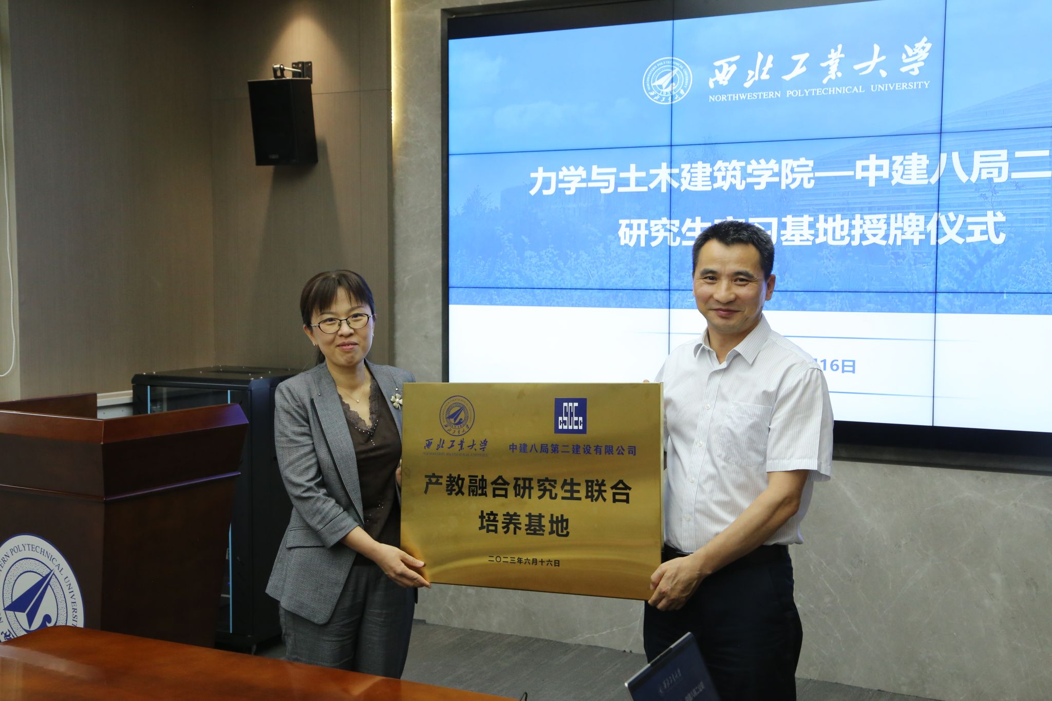 随后巨维博和张慧共同完成了学院本科、研究生实习基地授牌。授牌仪式结束后,双方围绕学生就业、校友发展、联合科研、人才培养开展了交流座谈。在学生就业和校友培养方面,学院4名在中建八局二公司工作的校友结合自身学习、工作经历做了经验分享,提出要继续秉持“公诚勇毅”校训,在岗位上续写工大人新篇章。在联合开展有组织科研方面,中建八局二公司工程研究院业务经理曹志伟为与会师生做中建八局建筑工业化建造技术经验交流,双方表示在后期可以联合开展科研协助,推进产学研一体化协同为学院和公司发展做出贡献。在人才培养方面,中建八局二公司人力资源部经理刘嵩为师生介绍了公司人才培养体系,表示欢迎更多的西工大学子进入公司开启人生新篇章。