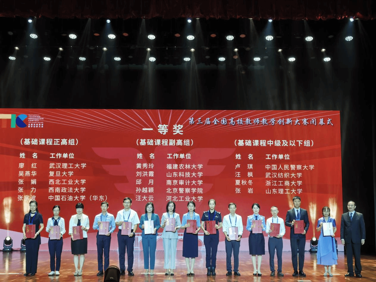 2023年8月18日至22日,由教育部高等教育司指导、中国高等教育学会主办的第三届全国高校教师教学创新大赛全国现场赛在浙江大学举行。张娟老师荣获第三届全国高校教师教学创新大赛基础课程正高组一等奖。