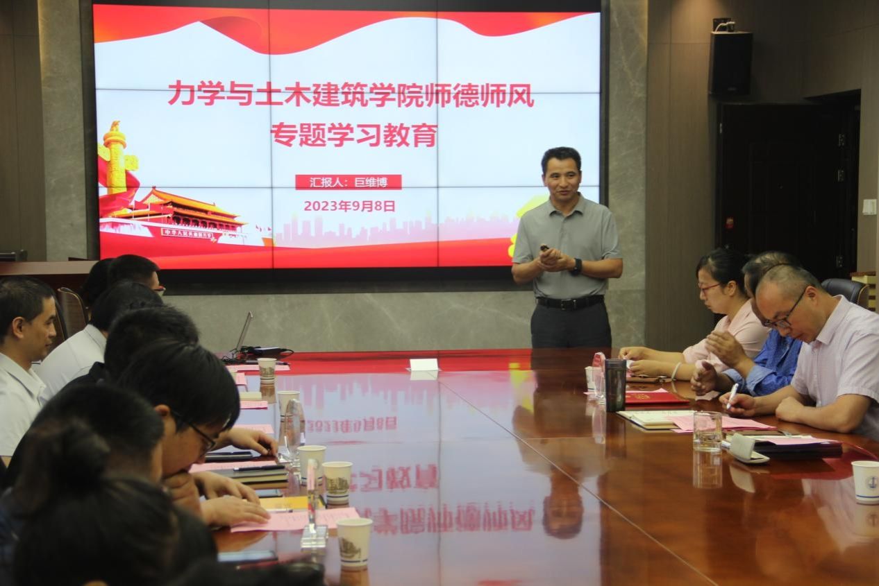 会上,巨维博书记主持开展了师德师风专题学习教育,首先带领学院教师进行师德师风理论学习,明确国家教育强国重大战略,是实现高水平科技自立自强的重要支撑,明确教育强国“培养什么人、怎样培养人、为谁培养人”的根本问题。其次,学院开展了师德师风警示教育,通过学习教育部公开曝光的违反教师职业行为十项准则典型案例,以及学院近三年教学事故案例,警示学院全体教师以案为诫,强化师德师风建设,明确红线意识,强化底线思维,为教育事业高质量发展作出积极贡献。随后,学院教师签订了师德师风责任书。