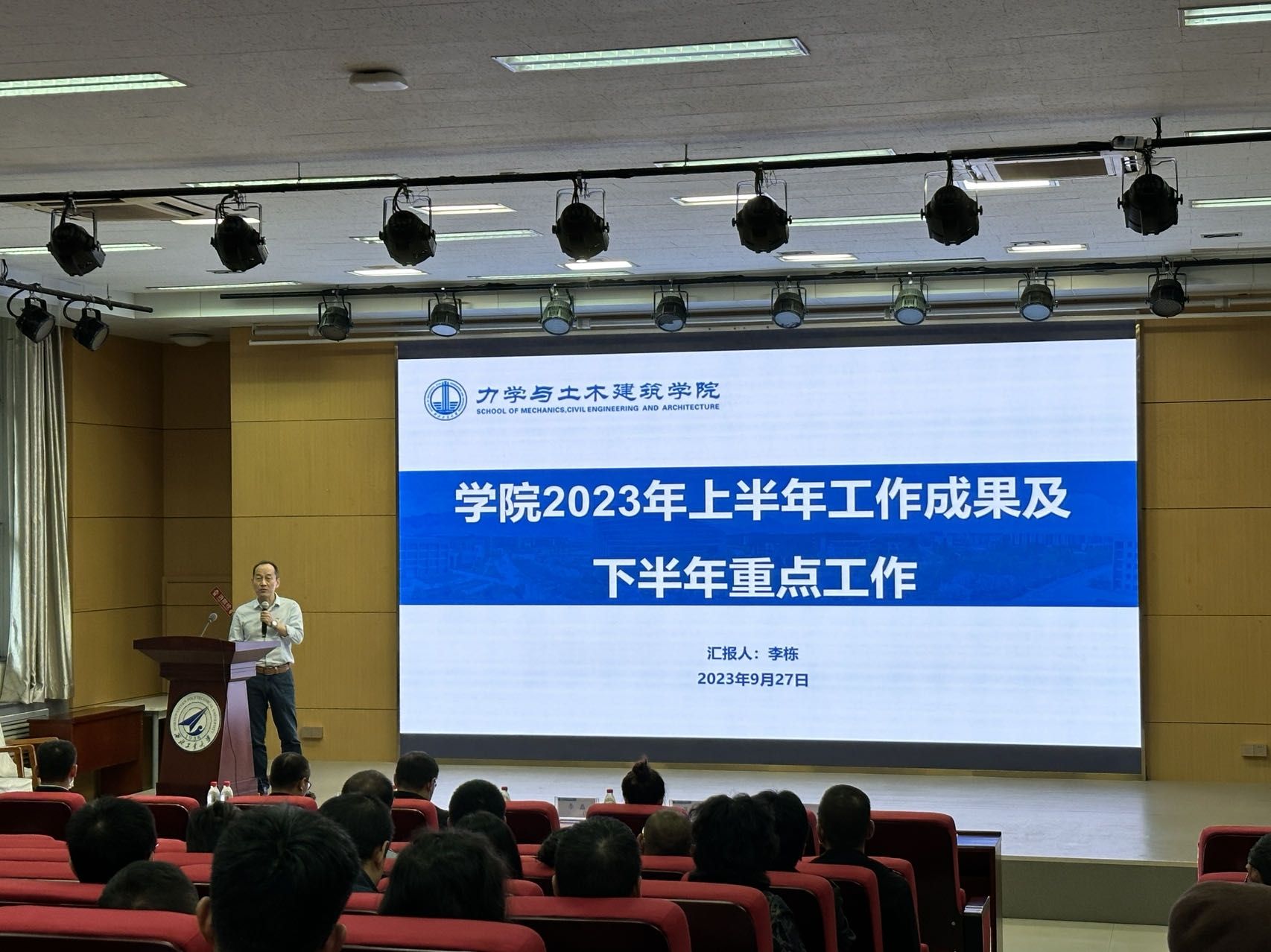 9月27日上午,力学与土木建筑学院召开新学期全院教职工大会。会议由学院党委书记巨维博主持。