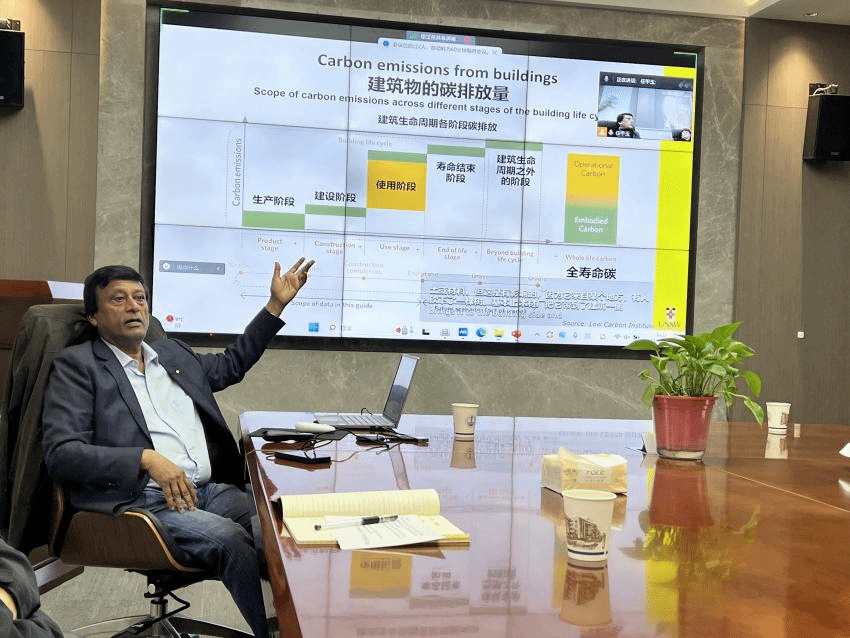 Prasad院士此次来访,带来了题为“Moving beyond sustainable built environments - decarbonisation,resilience and regeneration(超越可持续发展的环境--脱碳、复原和再生)”的学术讲座,讲座由学院“可持续建筑与环境研究团队”国际合作项目负责人邵腾副教授主持,李栋院长做欢迎致辞,30余名师生参加了学术研讨。