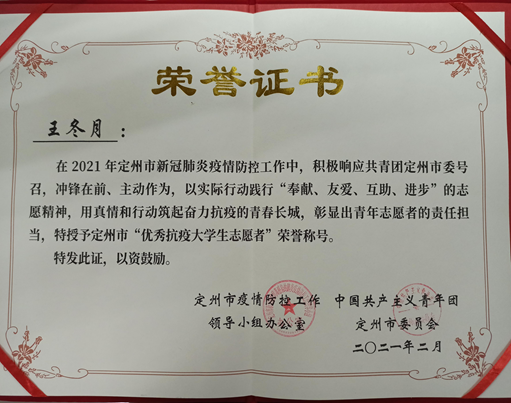 力学与土木建筑学院2018级本科生王冬月,共青团员,担任06011801班班长。2020-2021学年学分积95.12,综合测评2/40,获2020-2021学年国家奖学金。