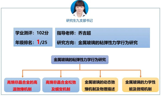 2020年综合测评在年级排名第一(1/25)。在乔吉超教授的指导下从事“高熵非晶合金的粘弹性力学行为研究”。围绕这一研究框架,取得了一定的科研成绩,具体为: