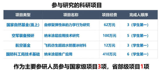 面向国家重大战略需求,深化工程应用。作为主要参研人员参与国家级科研项目3项,省部级项目1项。