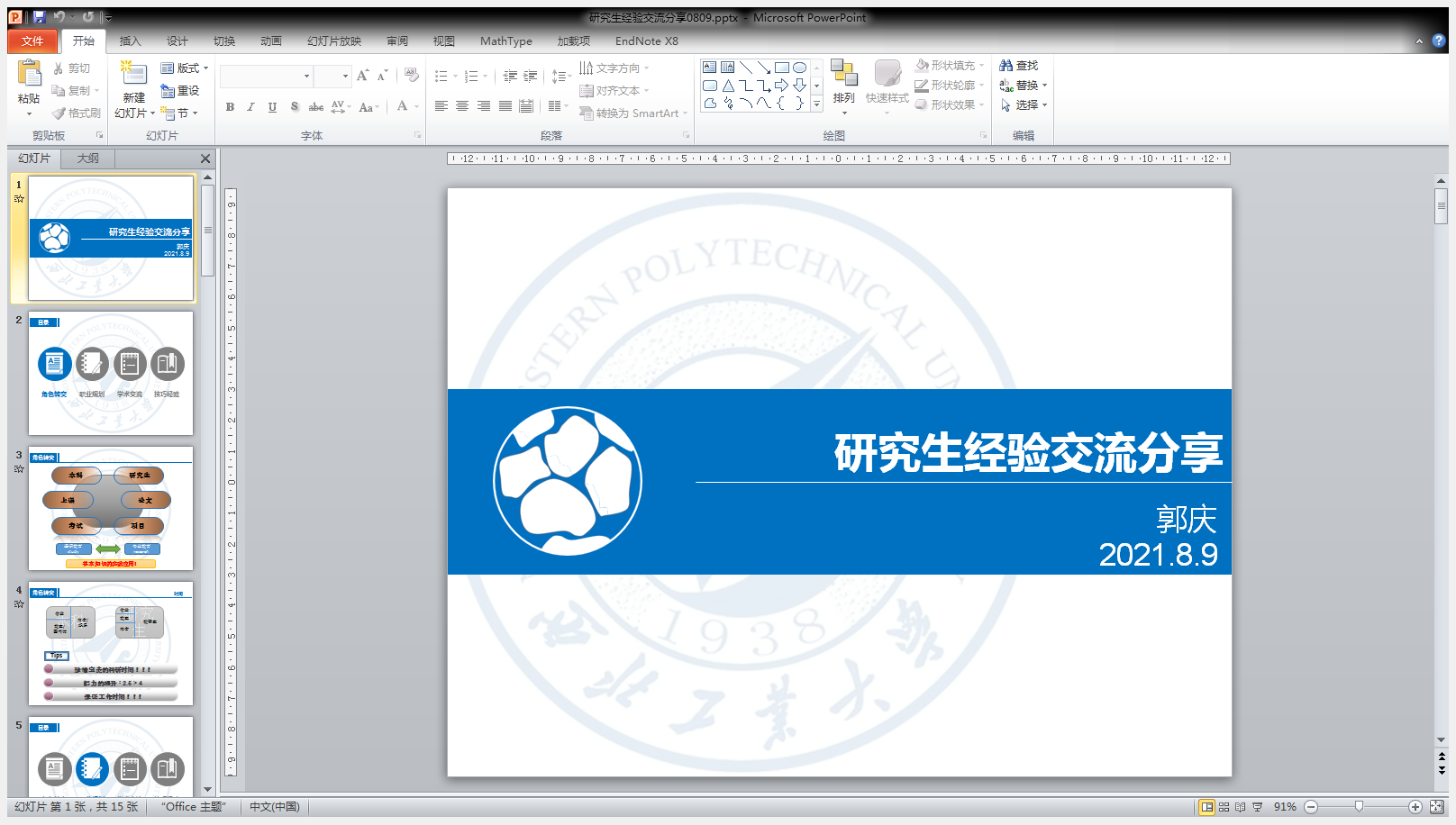 是刘永寿教授指导我走上了科研道路。大二时,刘老师成为了我的本科生导师,此后的每次组会都去旁听学习,较早的接触科研使我对学术研究有了比较早的了解,刘老师教导我们知道了科研的意义与价值。到了大四保研时,很多同学开始联系去其他学校读研,而刘老师渊博的学识、幽默健谈的性格、课题组和谐的氛围都吸引着我最终选择了留下。刘老师对于我的培养有着非常明确的规划,让我由点及面、由小做大、逐渐深入、理工结合,在博士阶段打下科研基础的同时,取得一些小的科研成绩。我的第一篇论文是刘老师确定的题目,是博士师兄论文的延伸,难度不高,但有效地锻炼了开展科研和学术写作的基本技巧,掌握了本领域内基本研究方法,成功把我带入了科研这条道路。从第二篇论文开始,刘老师放手让我自己去寻找想法与思路,一起讨论后帮我斧正方案,确定下一步的研究方向,有意地锻炼了我独立发现与解决问题的能力。在刘老师的指导下,四年多来我取得了比较丰富的成果,在科研路上愈走愈稳。